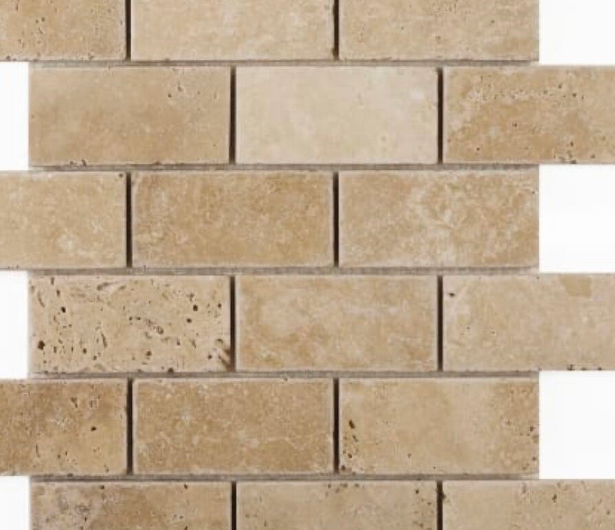 Travertine White Wash Brick Wall & Floor Mosaic Tile Sheet - 305 x 305mm